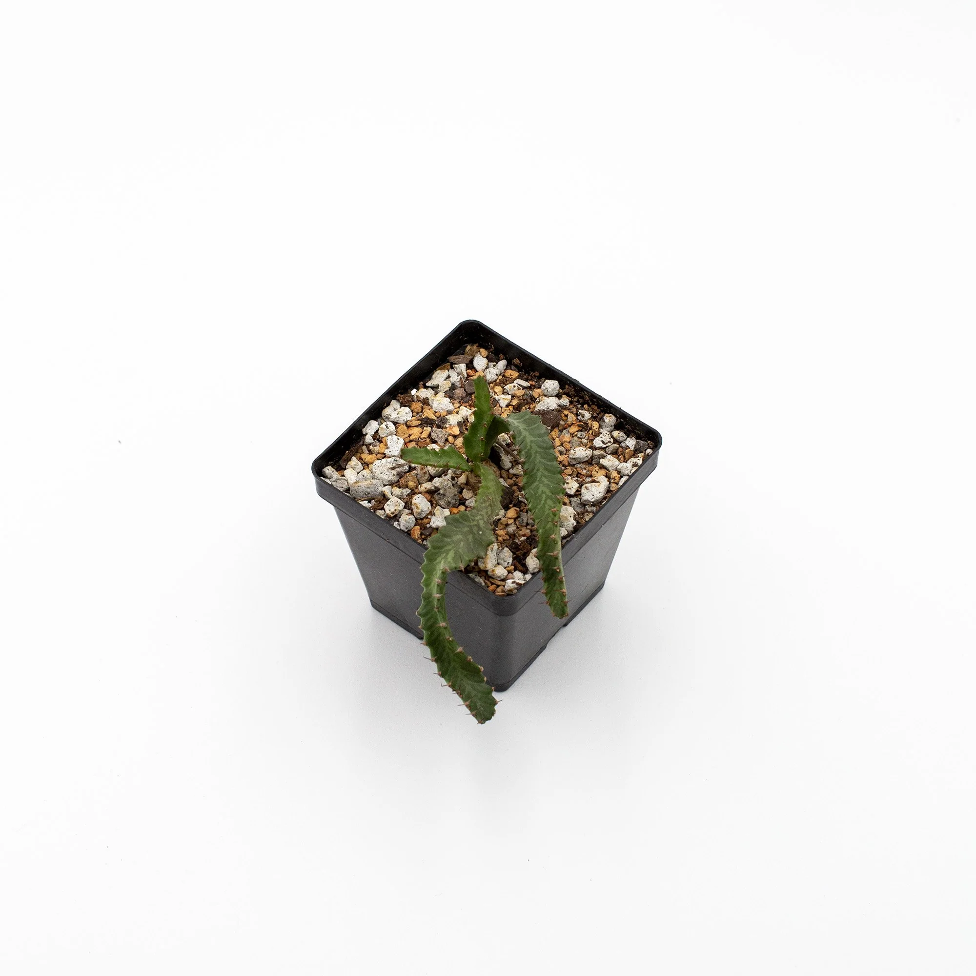 This Euphorbia is native to South Africa, among grass and pebbles with its tuber buried. The branches are left exposed laying against the ground.